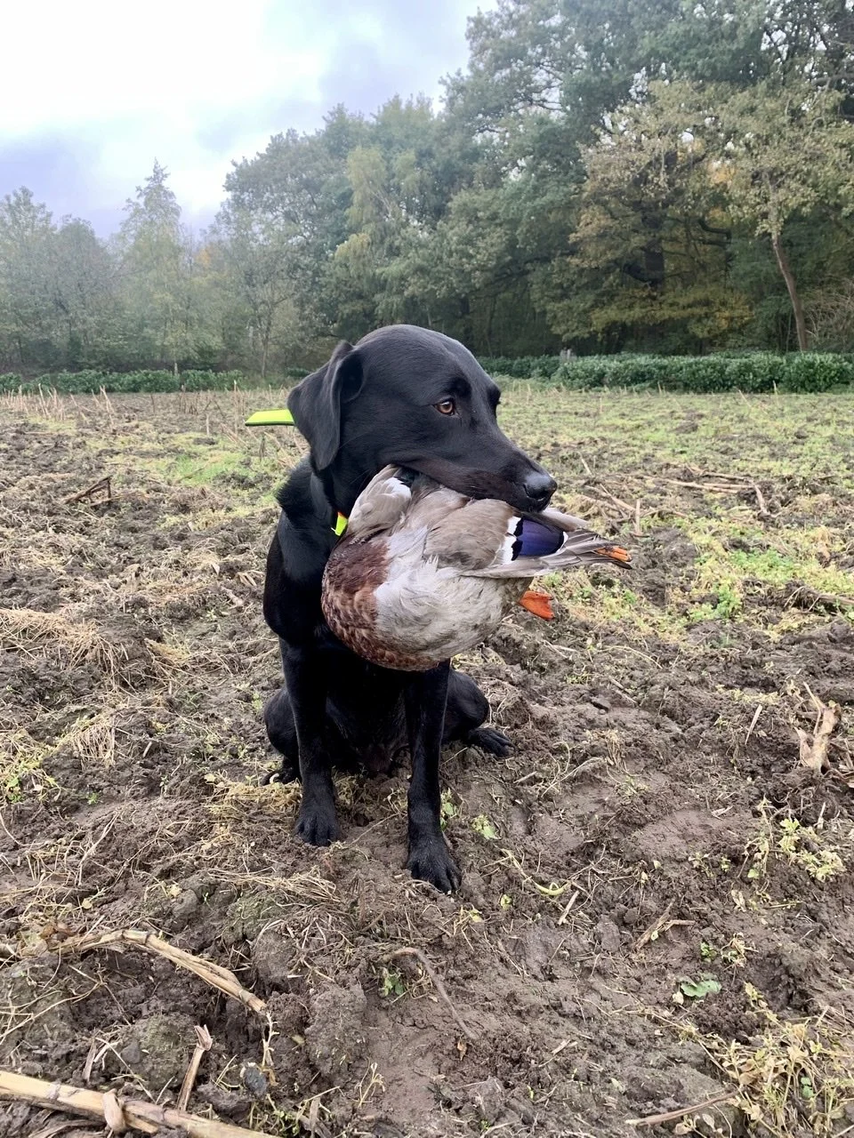 Seit 2018 kommt er im Herbst mit auf die Niederwildjagd und kann dort seine Qualitäten unter Beweis stellen. Er hat schon viel Erfahrung an geflügelten Fasanen (Runner) und bei der Nachsuche allgemein sammeln dürfen.